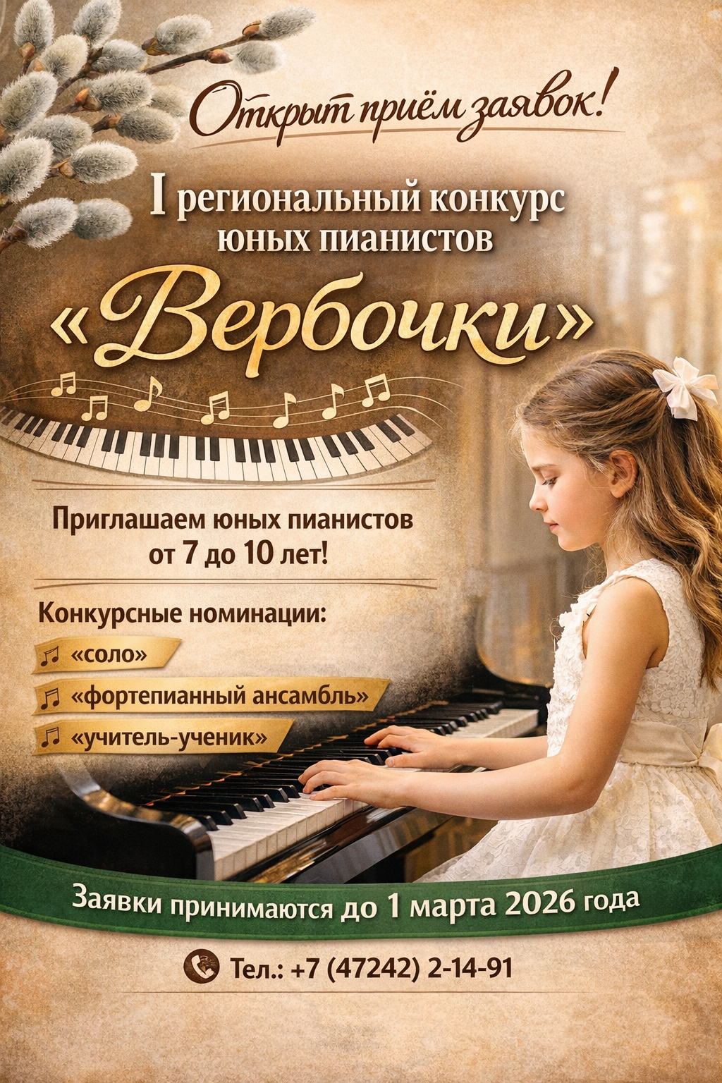 Будем рады видеть юных пианистов на конкурсе «Вербочки»